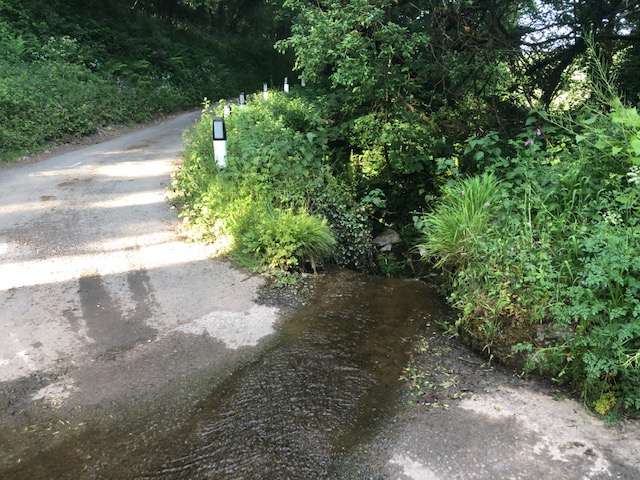 I ran on to join the other lane at Rolster Bridge where the Harbourne river is measured for depth of a rise of 0.2M to 2.03 M when flooding occurs. I joined the road to Eastleigh and passed another medieval farm, Overleigh before rejoining my usual route at Westleigh.