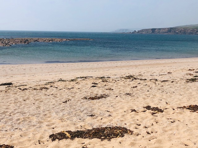 An empty swathe of pale gold sand
